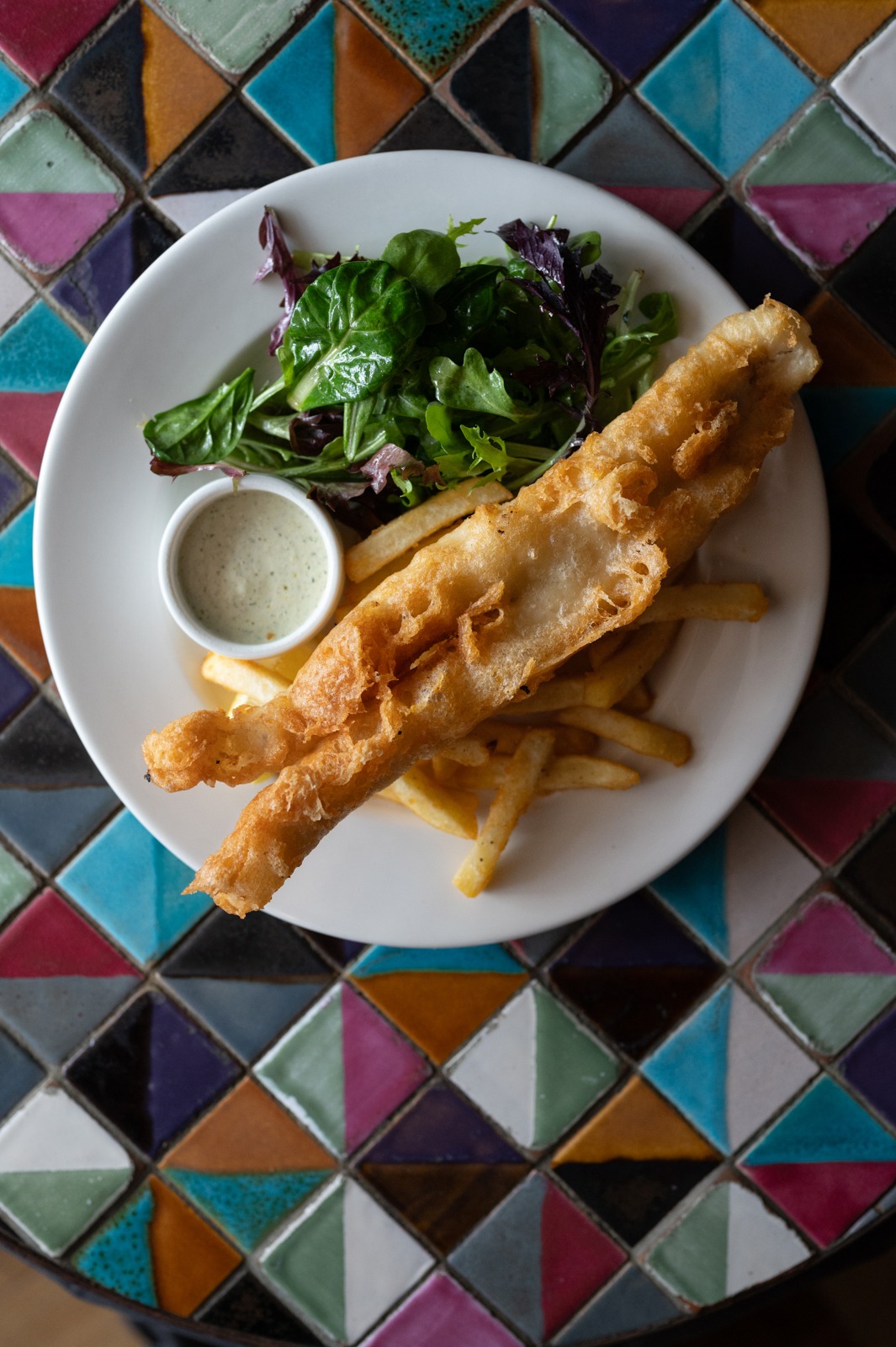 $28Beer battered fish and chips with leafy greens, tartare sauce and lemonOut of stock