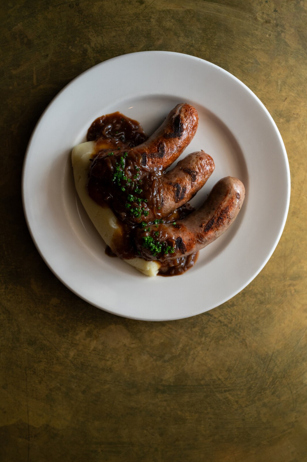 $26Bushrangers bangers and mash cumberland pork sausage onion gravy & mash potatoOut of stock- CAESAR SALAD$24Romaine lettuce, bacon, croutons, soft egg, miso anchovy dressing, parmesanOut of stock
